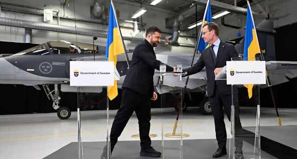 نخستوزیر سوئد و رئیسجمهور اوکراین با امضای یک تفاهمنامه، همکاری در حوزه توان هوایی را آغاز کردند؛ اقدامی که نخستین گام در مسیر یک قرارداد بزرگ صادرات جنگنده از سوئد به اوکراین قلمداد میشود. به گزارش ایسنا، «اولف کریسترسون» نخستوزیر سوئد و «ولودیمیر زلنسکی» رئیسجمهور اوکراین همکاری خود در حوزه نیروی هوایی را تعمیق بخشیدند ... ۱۵۰ فروند جنگنده گریپن سوئدی در راه اوکراین